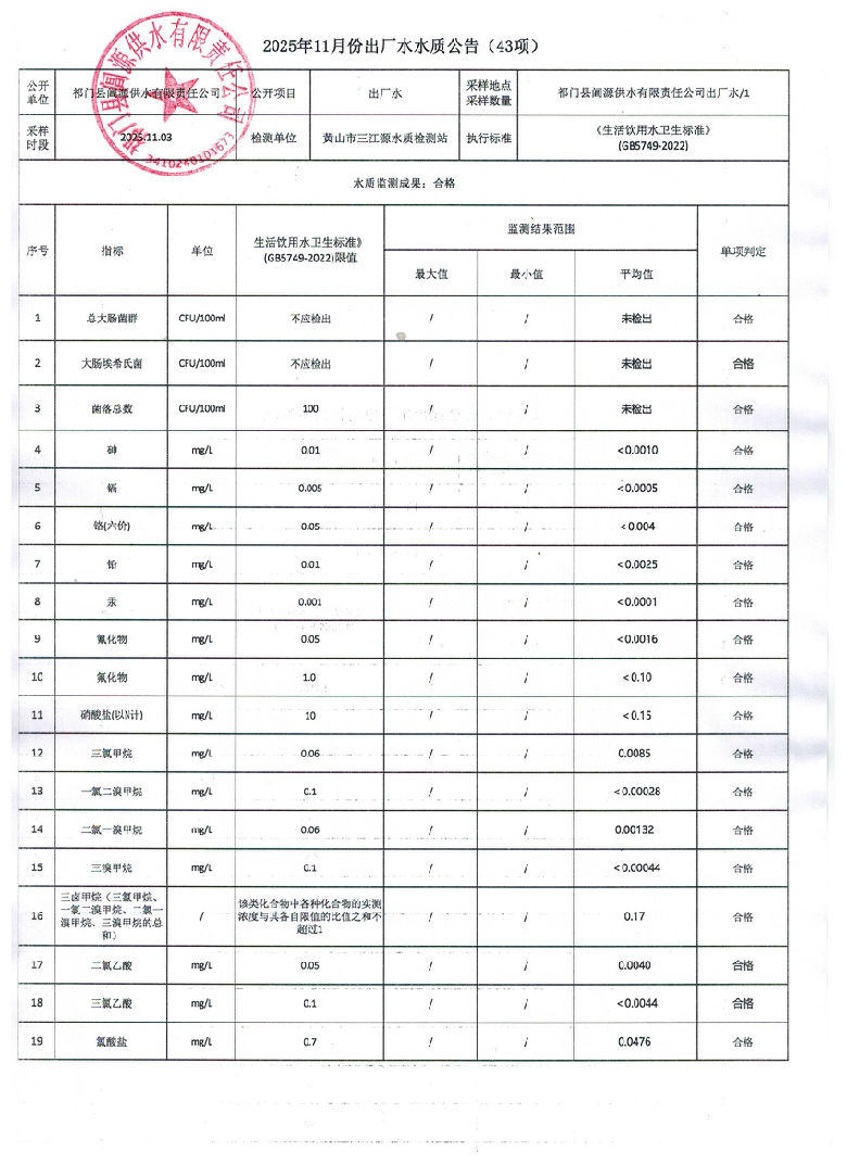 您當前位置:首頁 >2025年11月份出廠水水質信息公告(43項)